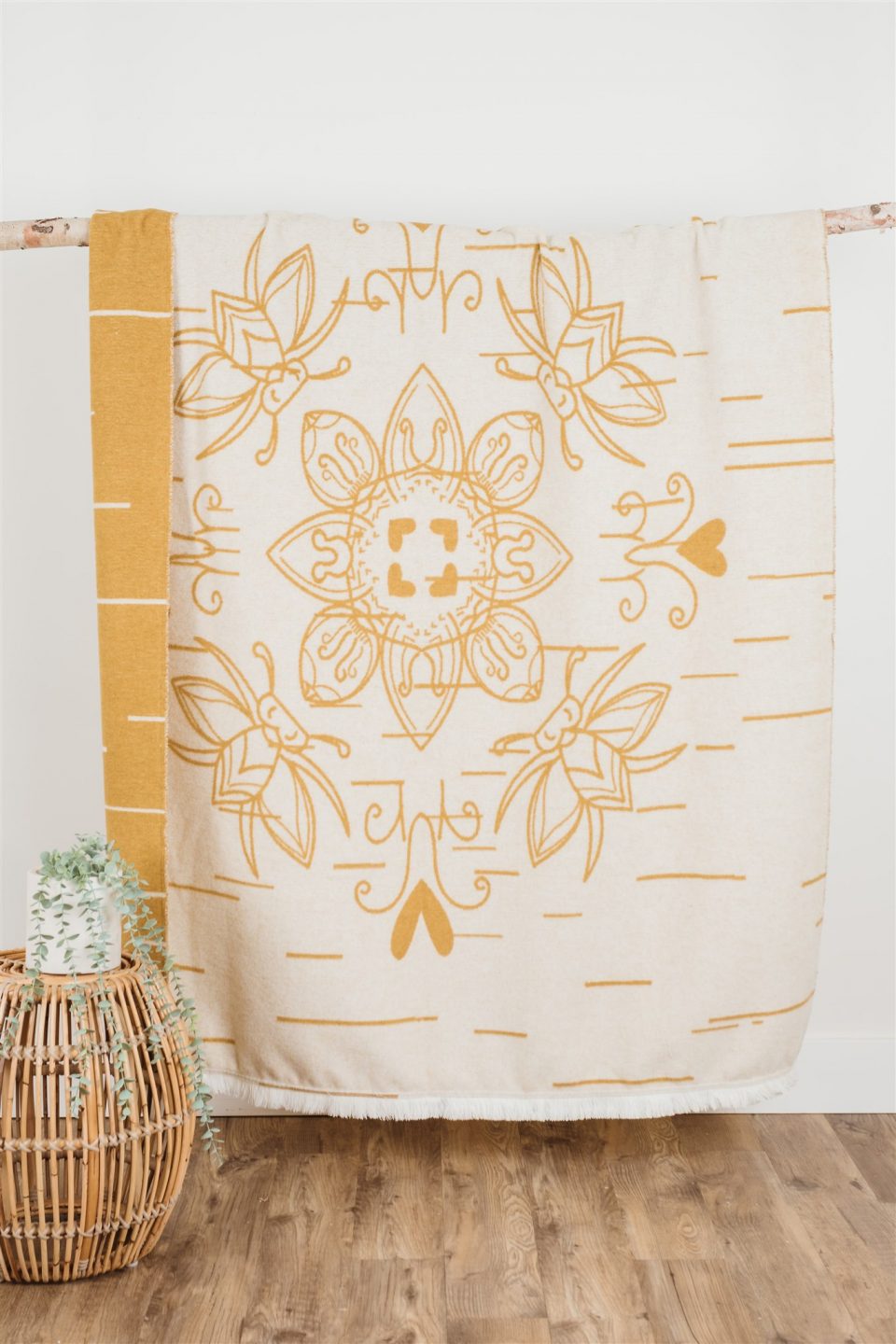 This original work has been digitalized to represent a one of a kind birch bark biting piece. The distinct lines in the fabric show the character of a birch tree.