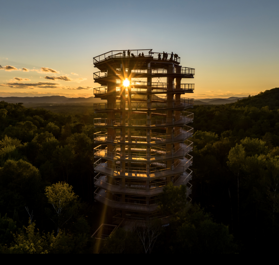 This place rich in history welcomed us nearly 10 years ago and we are pleased to share it with the newly installed recreational-tourist project LE SENTIER DES CIMES. Featuring a nearly 1 km long treetop boardwalk and a 40-meter high observation tower, this extensive installation allows visitors to admire the forest and the landscape around Mont Tremblant.