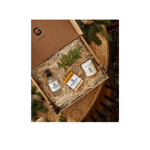 Offrez la forêt en cadeau avec ce coffret aux délicates effluves naturelles. La bruine d’ambiance sapin et lavande peut aussi être utilisée comme eau de linge et apportera une fraîcheur irrésistible à votre maison! La bougie aux conifères est délicatement parfumée avec des huiles essentielles, sans aucun produit de synthèse et vous offrira une ambiance chaleureuse pendant des dizaines d’heures, alors que le savon à l’argousier et au thé du labrador vous comblera avec sa mousse généreuse et son odeur enivrante.