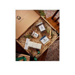À l’ouverture, un ruban vert, une carte de souhait et un chocolat au sapin donnent le ton : ce cadeau sera vraiment spécial! Chaque produit Gourmet Sauvage est positionné avec soin de manière à créer l’émerveillement dès qu’on retire le papier de soie qui les recouvre.