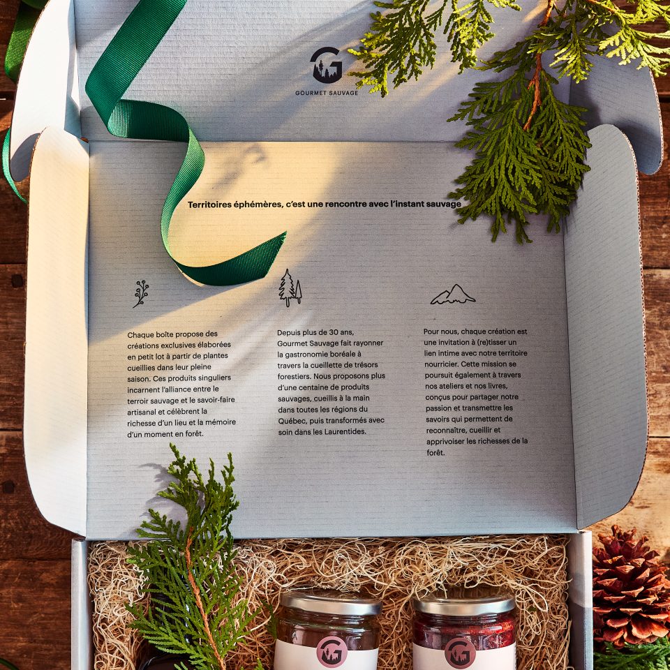 Ce coffret en édition limitée comprend 5 créations exclusives élaborées en petit lot à partir de plantes cueillies dans leur pleine saison. Ces produits singuliers incarnent l’alliance entre le terroir sauvage et le savoir-faire artisanal et célèbrent la richesse d’un lieu et la mémoire d’un moment en forêt. Voici ce que vous y trouverez: