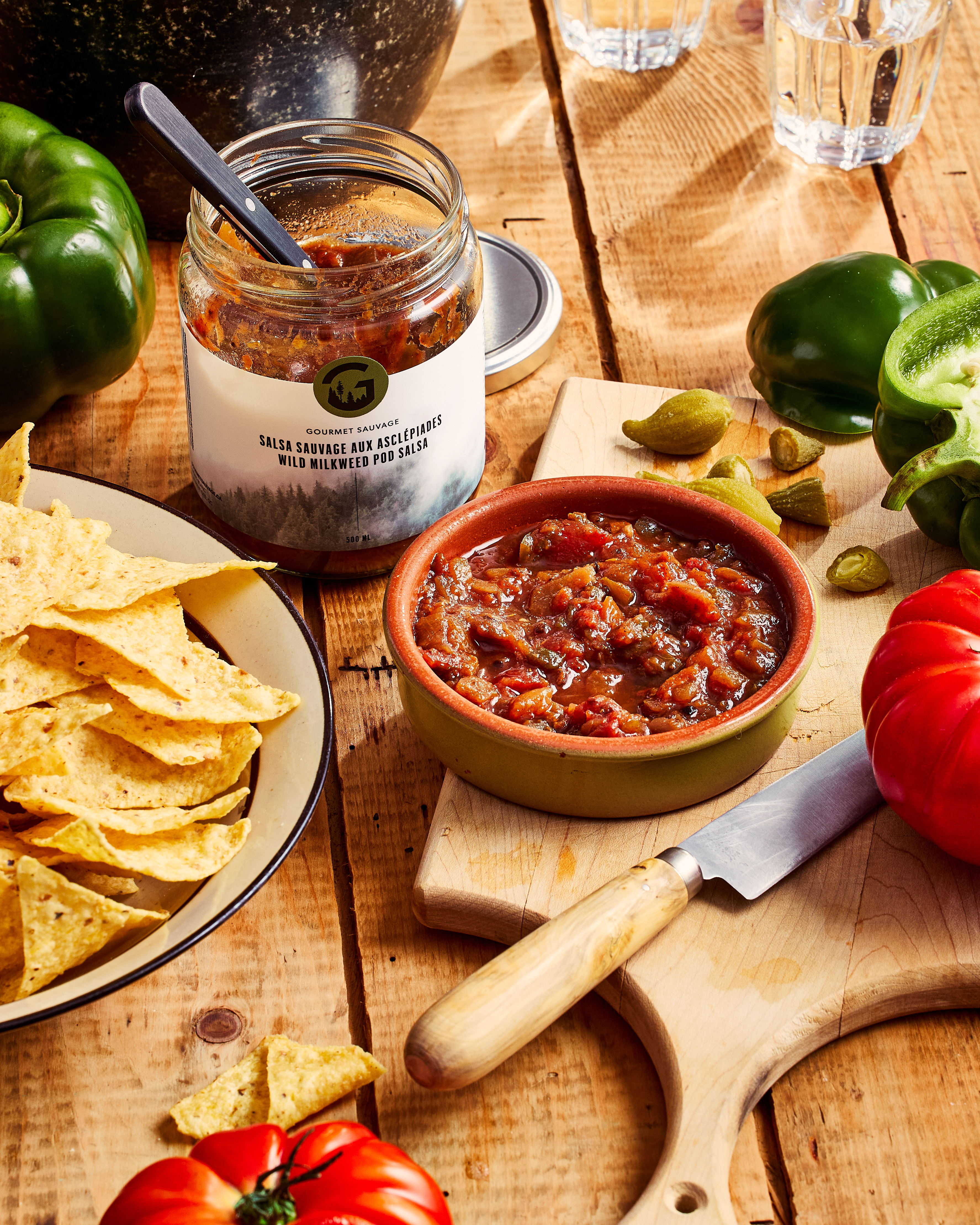 Voilà une salsa sauvage absolument décadente! À la fois fruitée légèrement relevée, et bien assaisonnée, elle est parfaitement équilibrée. Contenant des morceaux entiers de gousses d’asclépiades, un légume sauvage au goût floral unique, cette salsa fera l’unanimité à l’apéro!