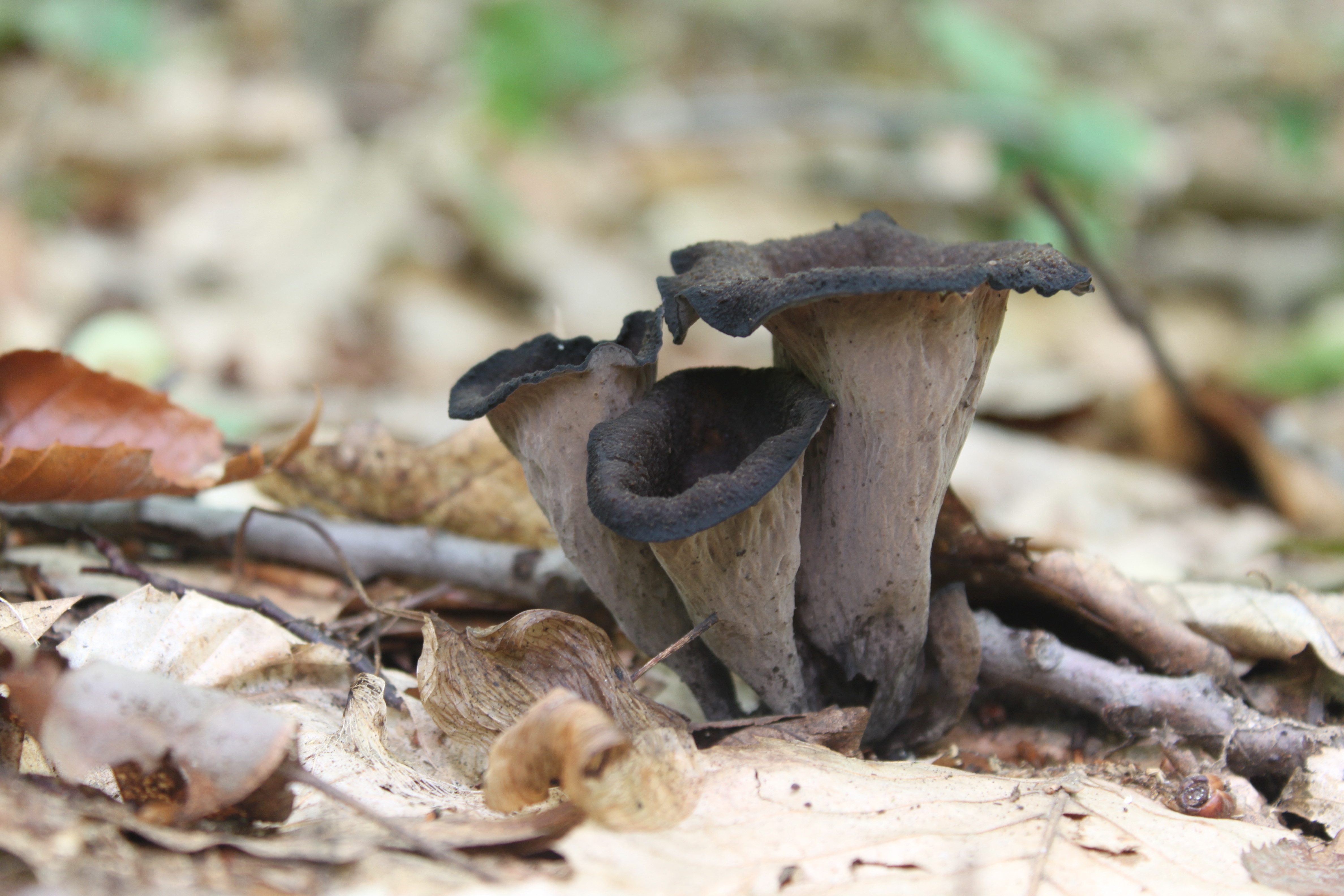 Les trompettes de la mort ne se récoltent pas aisément car leur couleur se détache difficilement du parterre forestier recouvert de feuilles mortes. Elles fructifient en petites talles qui passent souvent inaperçues. Le cueilleur qui en trouve, généralement dans une forêt de chênes rouges, aura avantage à se pencher à quatre pattes et à scruter le sol : il est fort probable qu’elles soient plus abondantes qu’elles n’y paraissent.