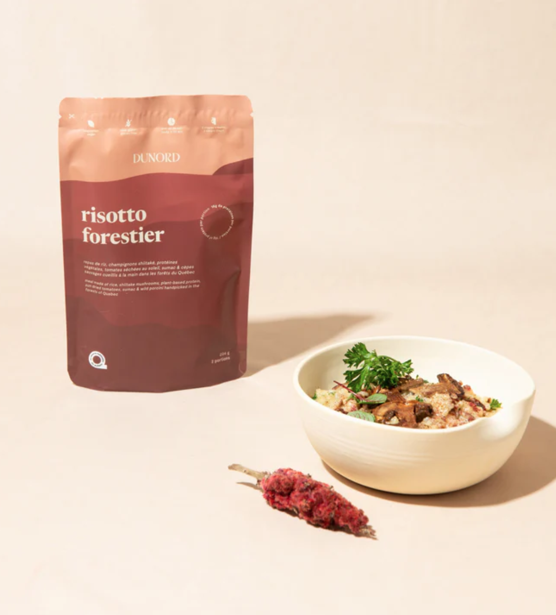 Le risotto DU NORD fait avec des ingrédients sauvages et des légumes rescapés de fermes locales est un vrai délice à préparer en un tournemain pour un repas digne d’un resto, en pleine forêt!