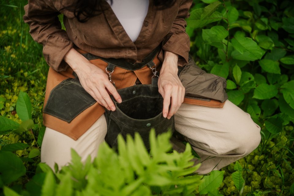 Ce tablier de cueillette fait à la main au Québec est un incontournable pour les cueilleurs et jardiniers!