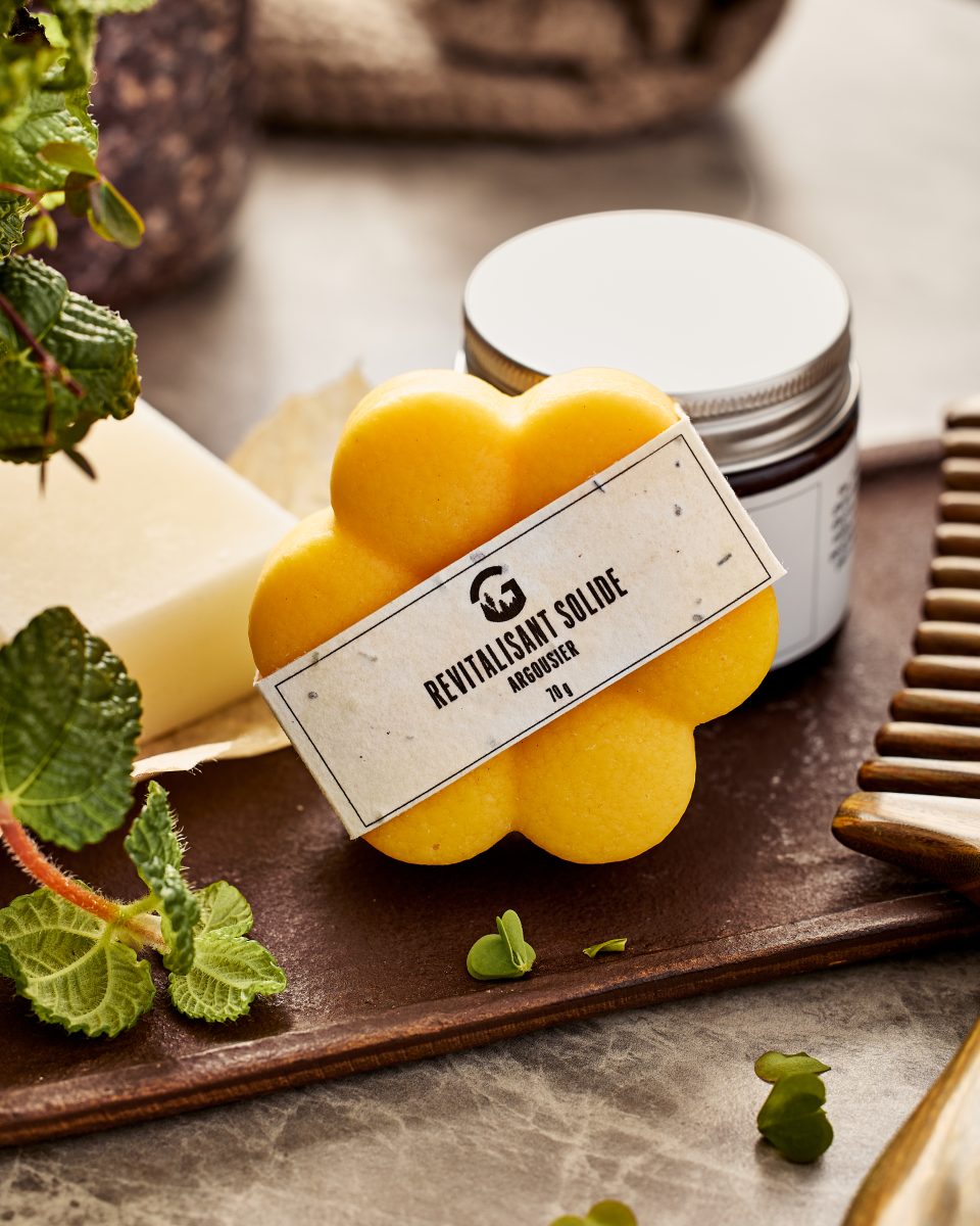 Revitalisant solide hyper-hydratant à l’huile d’argousier. Le revitalisant est conçu pour rendre les cheveux doux, soyeux et brillants en plus de les démêler, sans les alourdir.